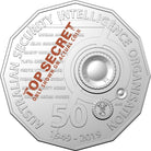 In 2019, the Royal Australia Mint commemorates the 70 anniversary of the Australian Security Intelligence Organisation (ASIO) with the release of Spies and Spooks – 70 years of ASIO. Evoking a bygone era of cold war espionage, the design of this uncirculated 50c coin is filled with secret symbols to discover and coded messages to break.