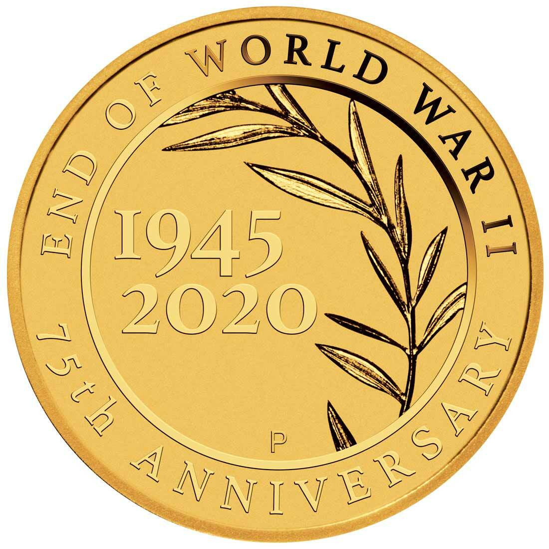 The coin’s reverse features an olive branch and the year-dates 1945 and 2020. The inscription ‘END OF WORLD WAR II 75th ANNIVERSARY’ and The Perth Mint’s ‘P’ mintmark are also included in the design.
