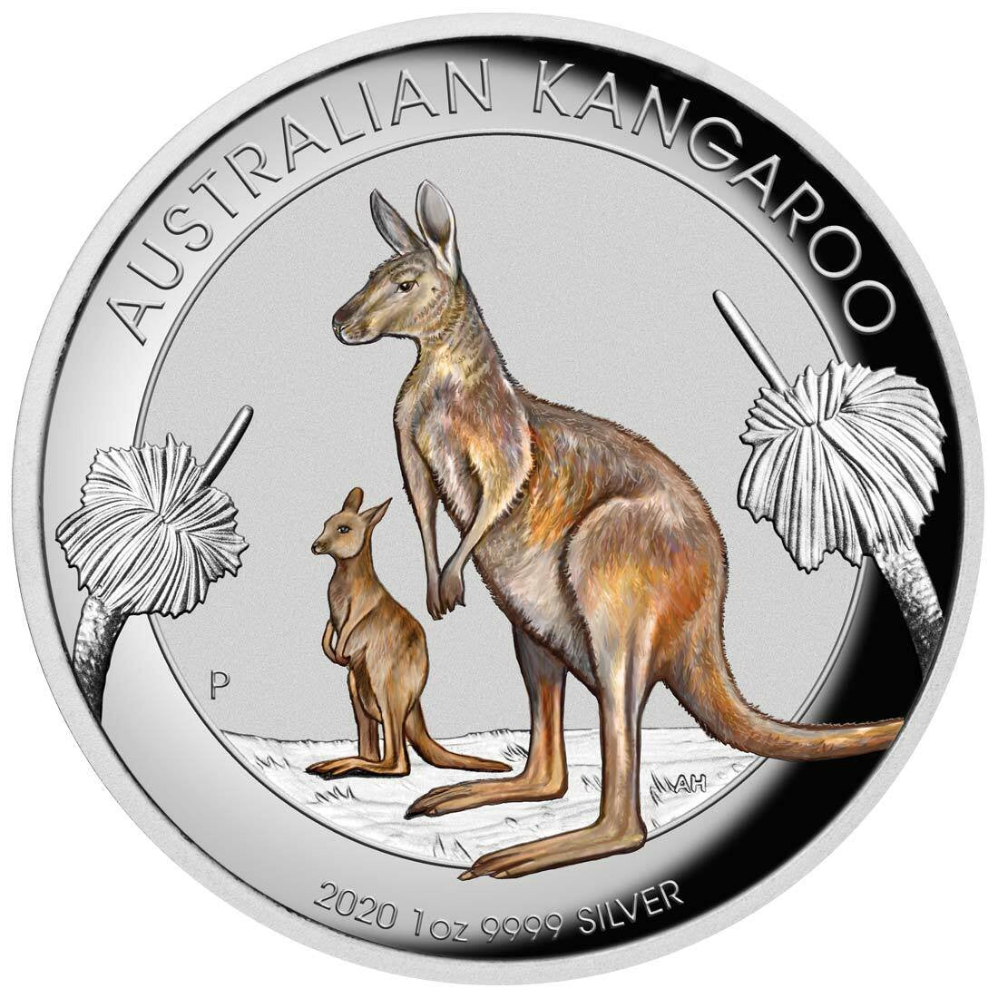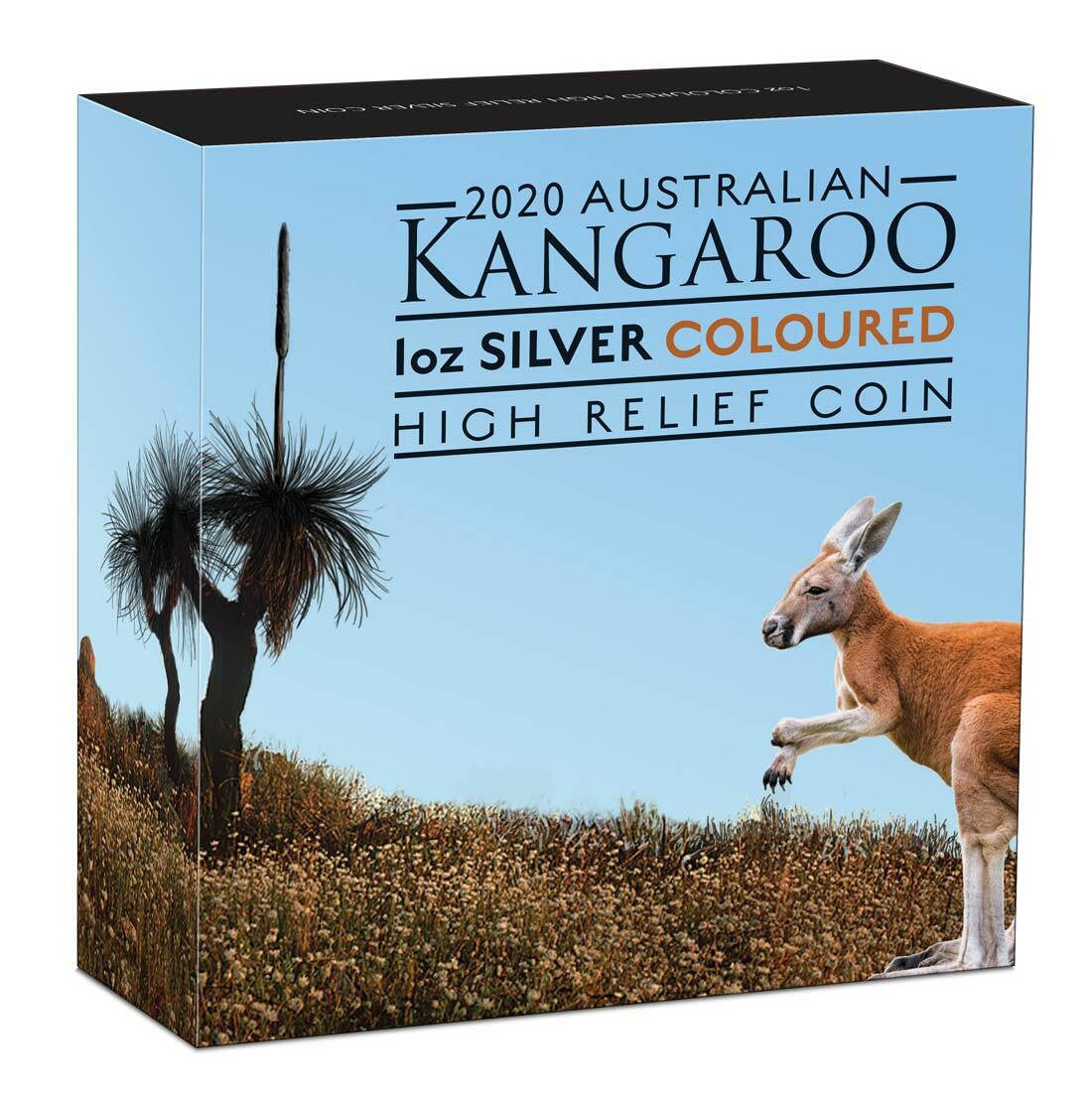 2020 1oz Silver Coloured High Relief Coin - Australian Kangaroo