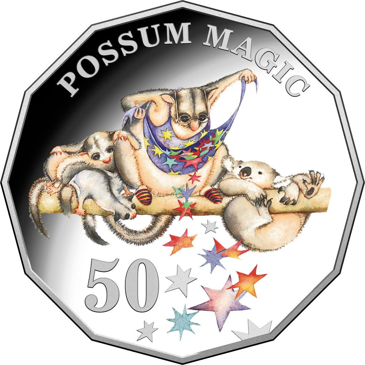 For 25 years the Royal Australian Mint has released an annual baby set of coins. In 2020 the set features once again the beloved Australian children’s picture book Possum Magic. Written by Mem Fox and illustrated by Julie Vivas, Possum Magic tells the story of two possums, Grandma Poss and Hush, who travel around Australia in search of a special magical food.