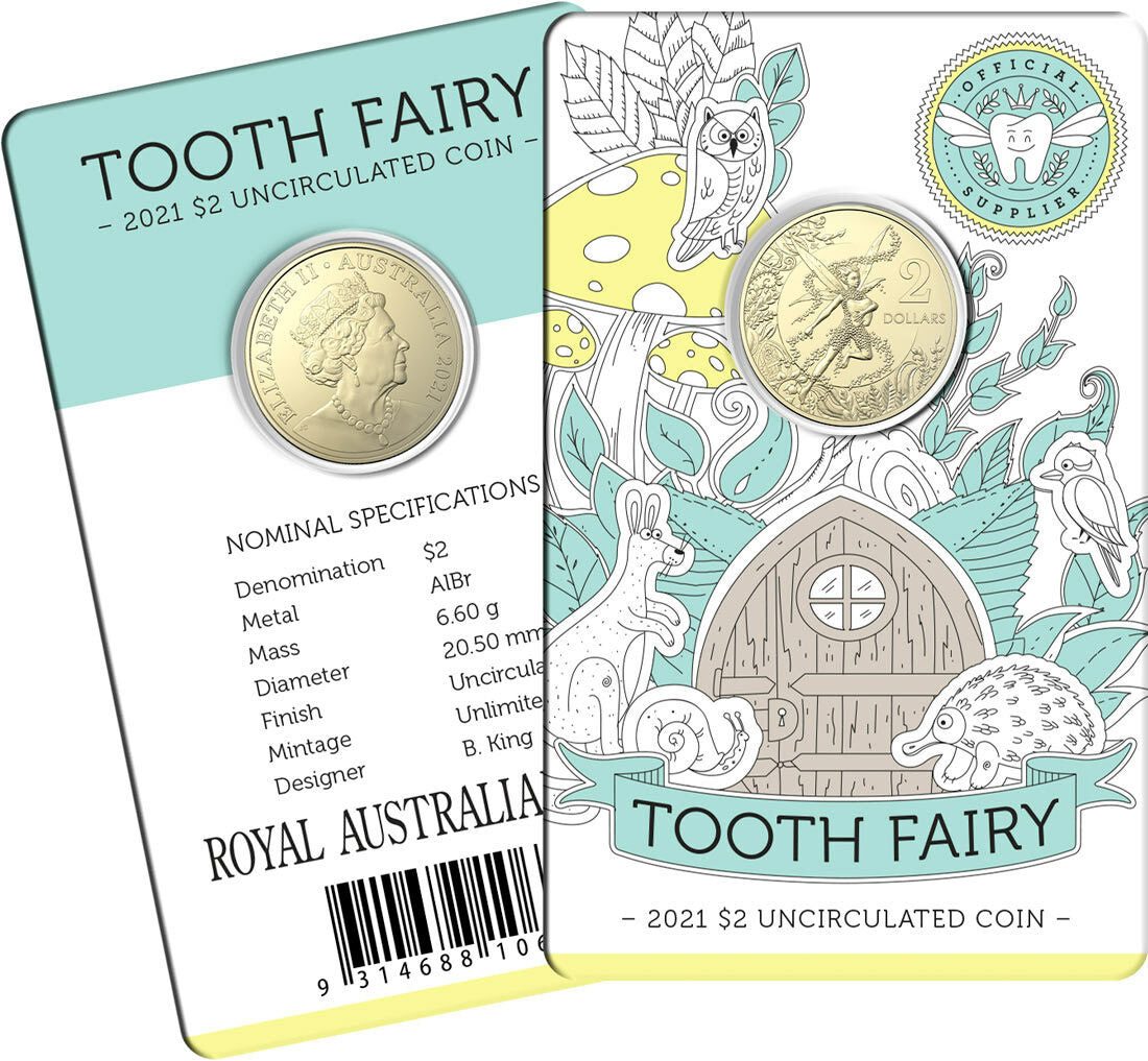 This Tooth Fairy Coin-in-Card celebrates the special relationship between the Tooth Fairy and the Royal Australian Mint, official supplier of coins to the Tooth Fairy in Australia. The Coin is intended as a special gift from parents, grandparents and others to children – to mark the occasion of losing baby teeth with a special keepsake Tooth Fairy coin.