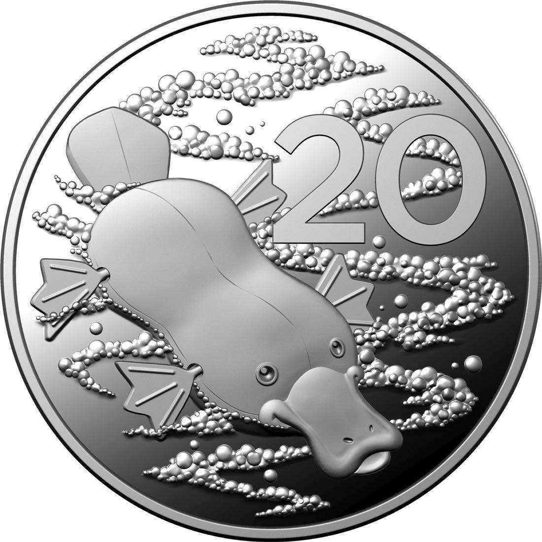 A posable wooden echidna snuggles on the 5c, a cute wind-up platypus swims amongst the bubbles on the 20c, while an adorable mob of cuddly plush kangaroos flop about on the back of the $1 coin.