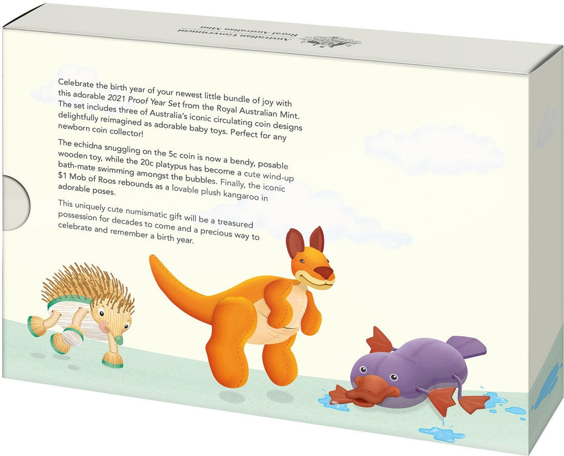 For the 2021 Proof Baby Coin Set we have looked a little closer to home and reimagined three of Australia’s distinct circulating coin as gorgeous baby toys.