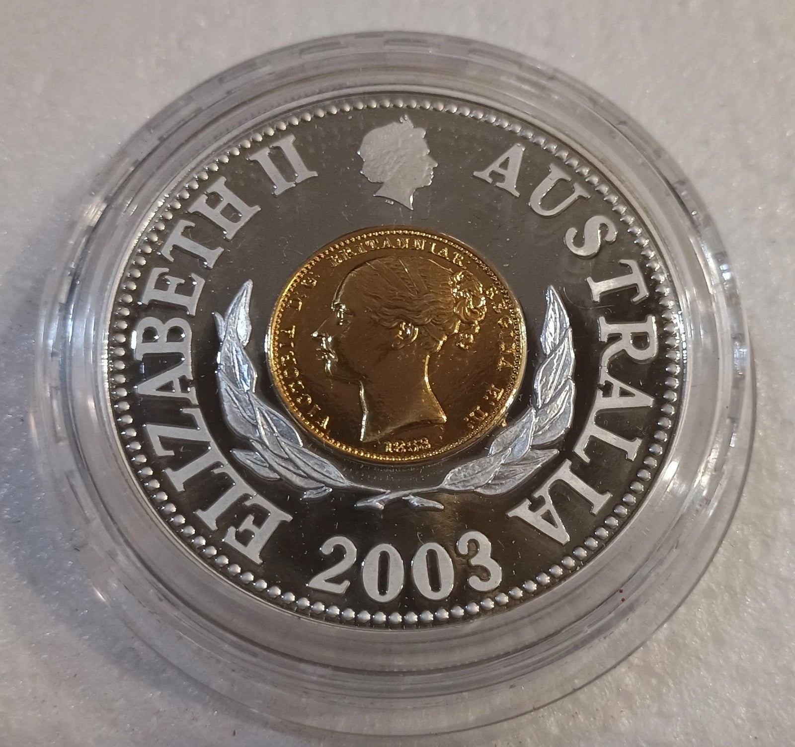 RAM 2003 $10 Sydney Mint Pattern 150 Years 60.50g Silver Proof Coin With Gold Plating