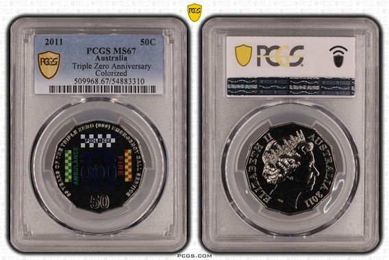 2011 50c Australia Triple Zero Anniversary Colorized PCGS MS67