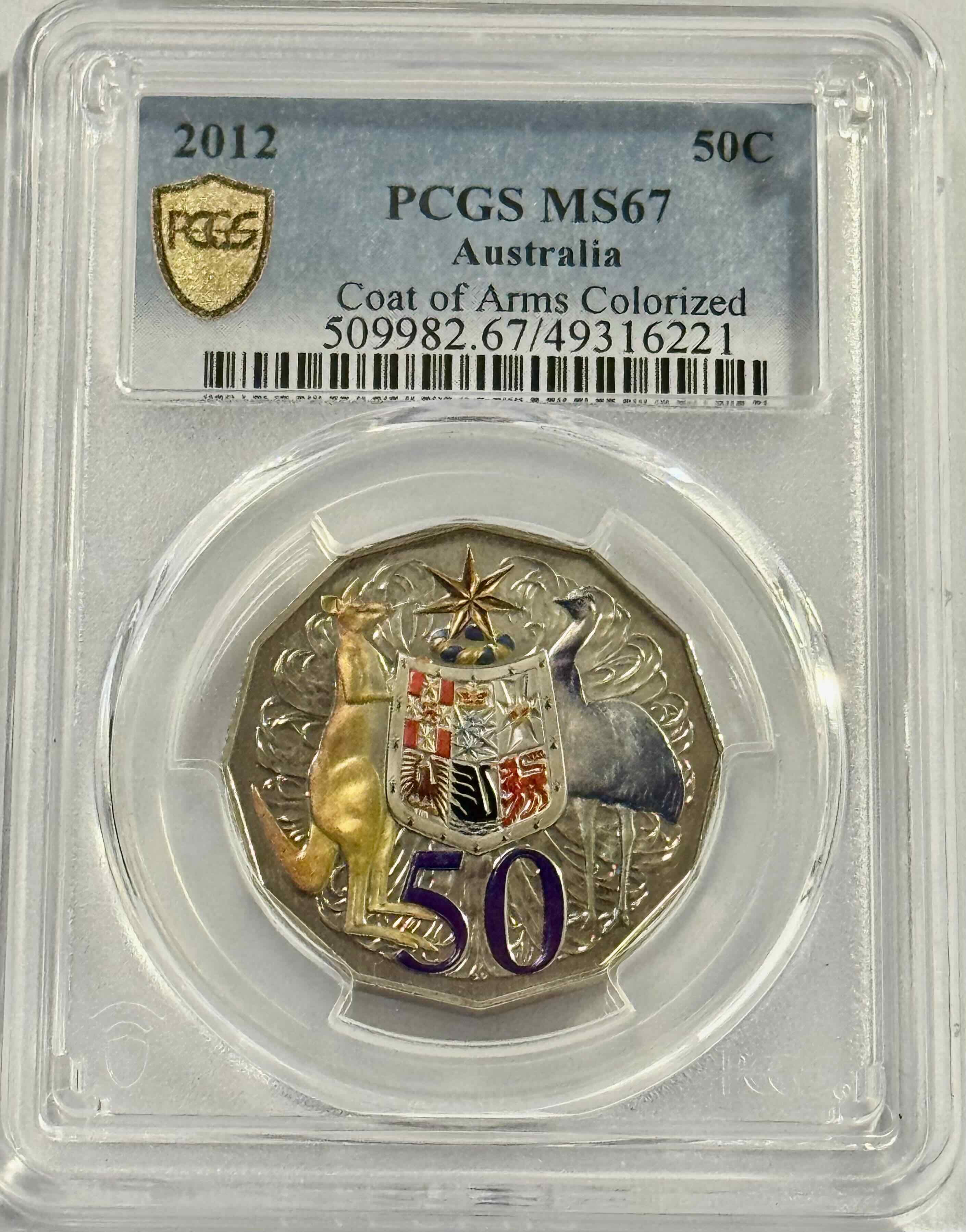Royal Australian Mint 2012 50c Coat of Arms Colorised PCGS MS67