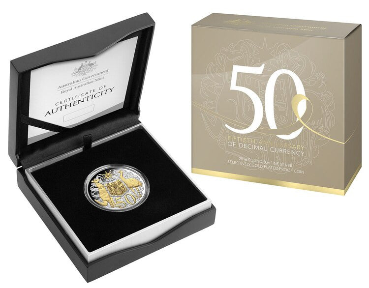 2016 Round 50c Fine Silver Selectively Gold Plated Coin - 50th Anniversary of Decimal Currency