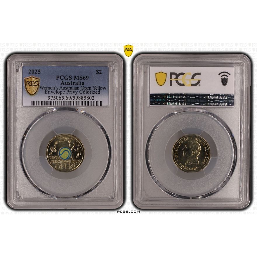 2025 Women's Australian Open Yellow Envelope Privy Colorized PCGS MS69