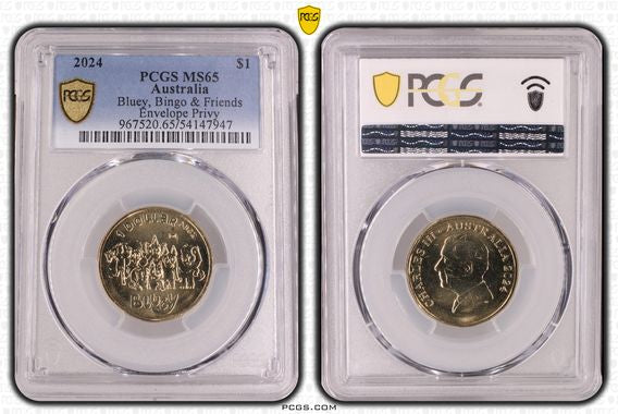 Royal Australian Mint 2024 $1 Bluey, Bingo & Friends Envelope Privy PCGS MS65.