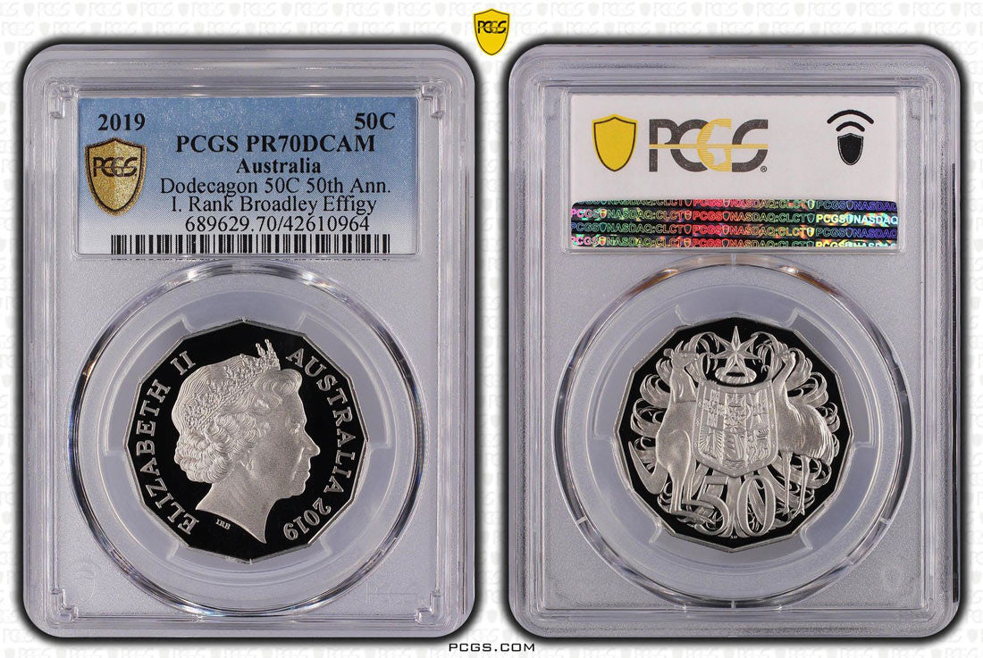 2019 50C Dodecagon 50C 50th Ann. I. Rank Broadley Effigy, PR70 DCAM Top Pop 46/0
