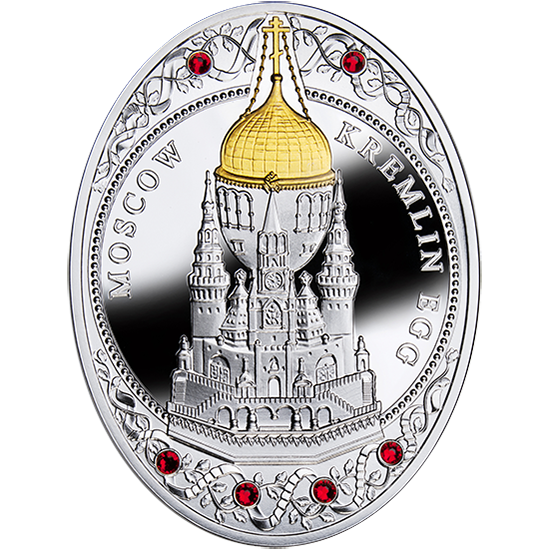 The 'Moscow Kremlin Egg' coin from a magnificent series commemorating the famous eggs made in the workshop of the Russian jeweler Peter Carl Fabergé. The series "Imperial Fabergé Eggs" is a continuation of the traditions that began at the Russian court in the second half of the 19th century. The collection was inspired by Fabergé eggs, commissioned by Tsars Nicholas II and Alexander III.