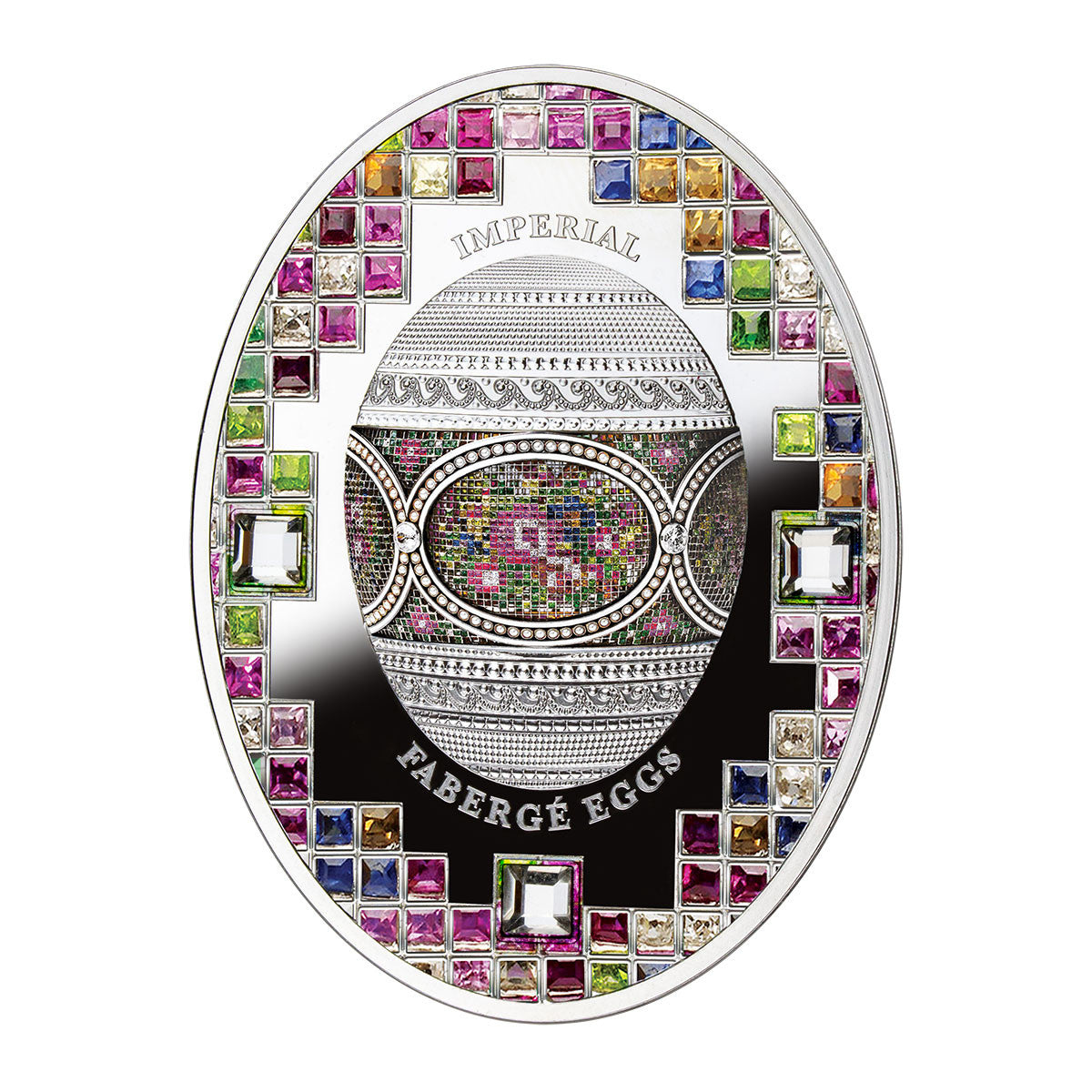 Created in 1914, the Mosaic Egg is considered one of the most beautiful and original masterpieces created at the House of Fabergé. Its surface – the jewelstudded platinum mesh – replicates the embroidery technique of petit point.