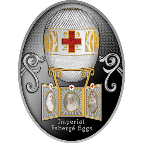 2021 Niue $1 1/2 oz Silver Proof Coin - Imperial Fabergé Eggs - Red Cross Egg with Portraits