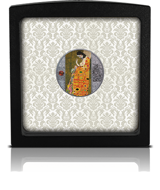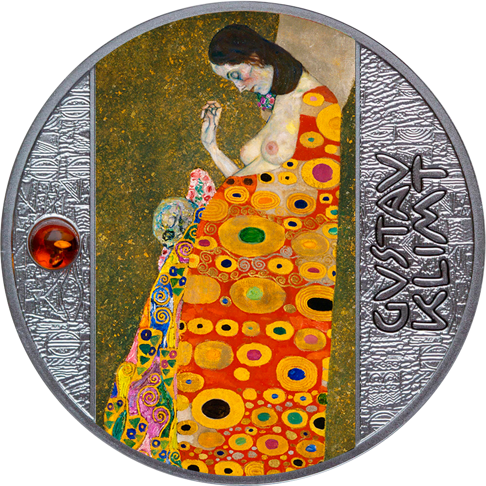 The masterpiece related to hope was a tribute to a mother who protects, nourishes, and warms her children. This silver coin with a miniature reproduction of the painting and an amber insert will surely become.
