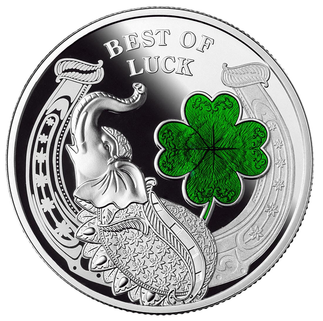 Four-leaf clover, horseshoe, and elephant are symbols that bring prosperity to their owner. The silver coin with their images will be a unique talisman that multiplies the luck of the holder.
