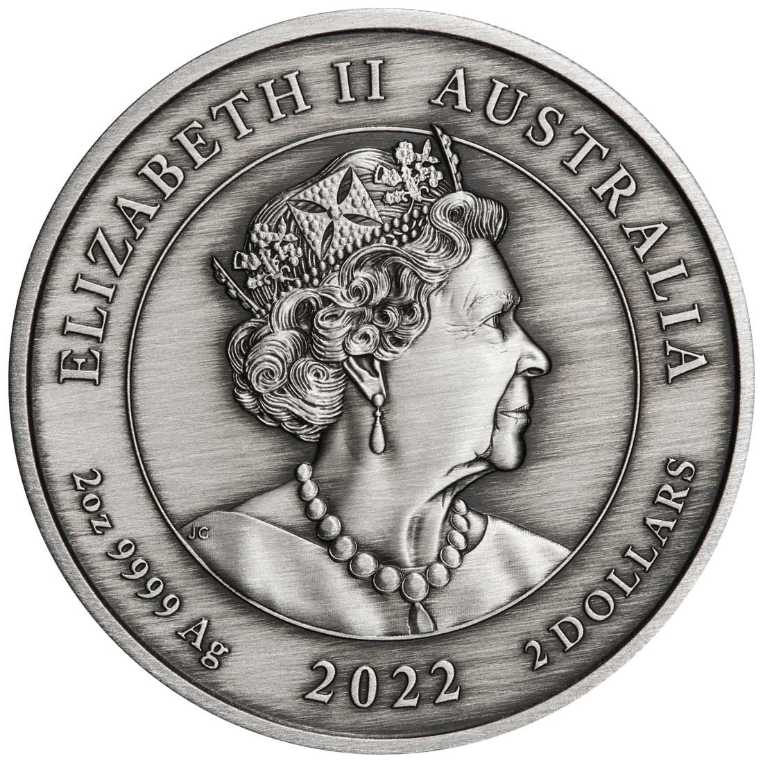 The coin is struck by The Perth Mint from 2oz of 99.99% pure silver and issued as legal tender under the Australian Currency Act 1965.