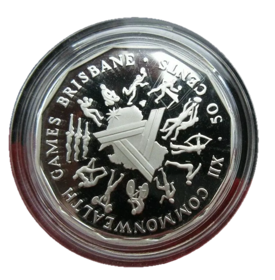 1989 Royal Australian Mint 1982 50c Brisbane Commonwealth Games Silver Proof Coin - ex Masterpieces in Silver Set