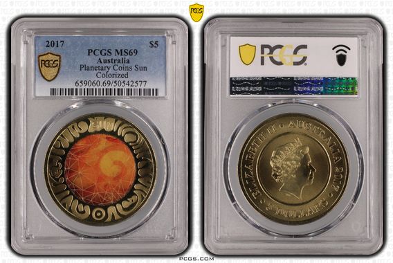 Royal Australian Mint 2017 Australia Planetary Coins $5 Sun Colorized PCGS MS69