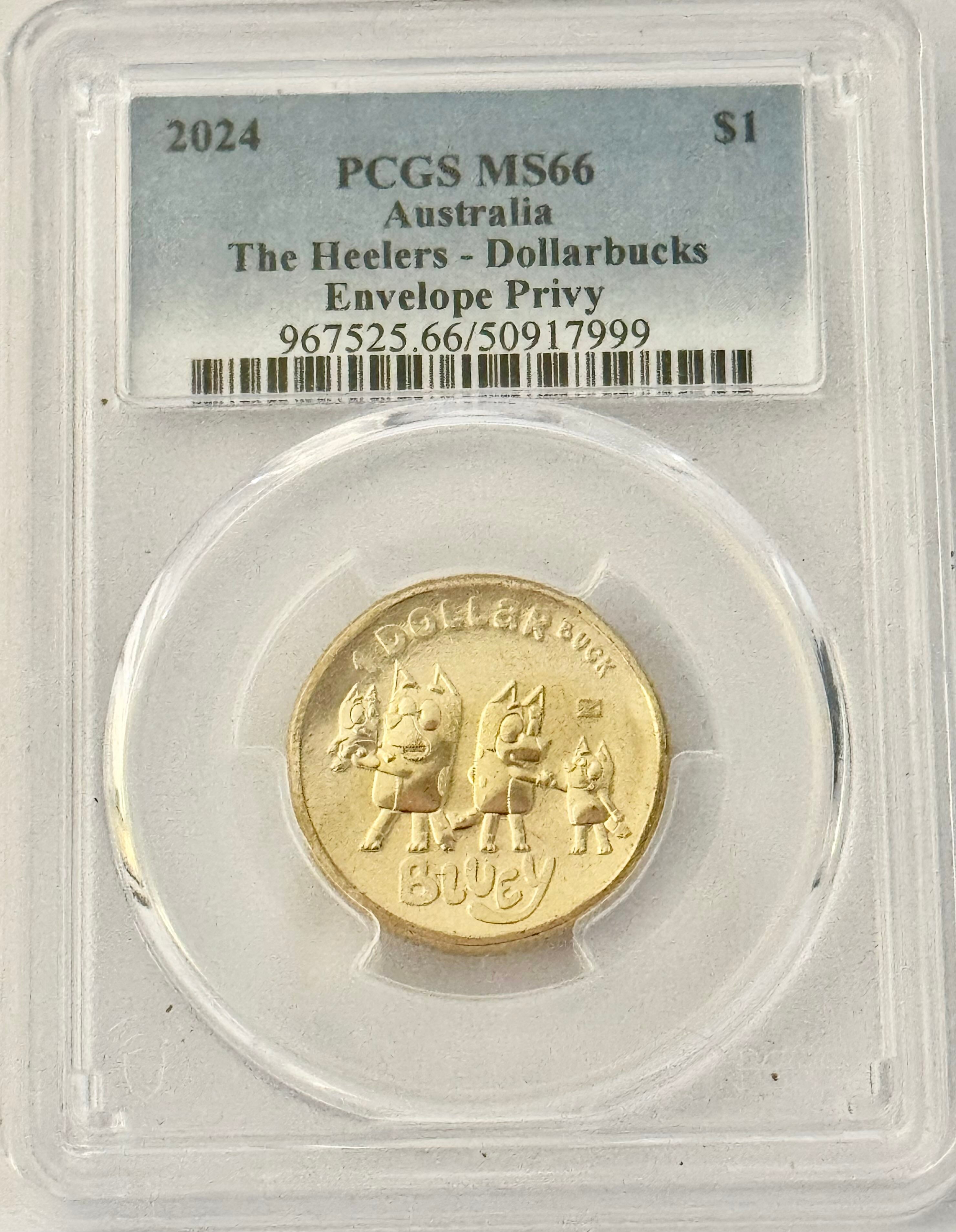 Royal Australian Mint 2024 $1 The Heelers - Dollarbucks Envelope Privy PCGS MS66