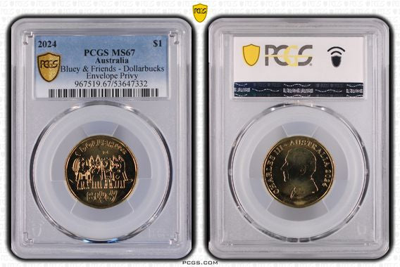 Royal Australian Mint 2024 $1 Bluey and Friends - Dollarbucks  Envelope Privy PCGS MS67