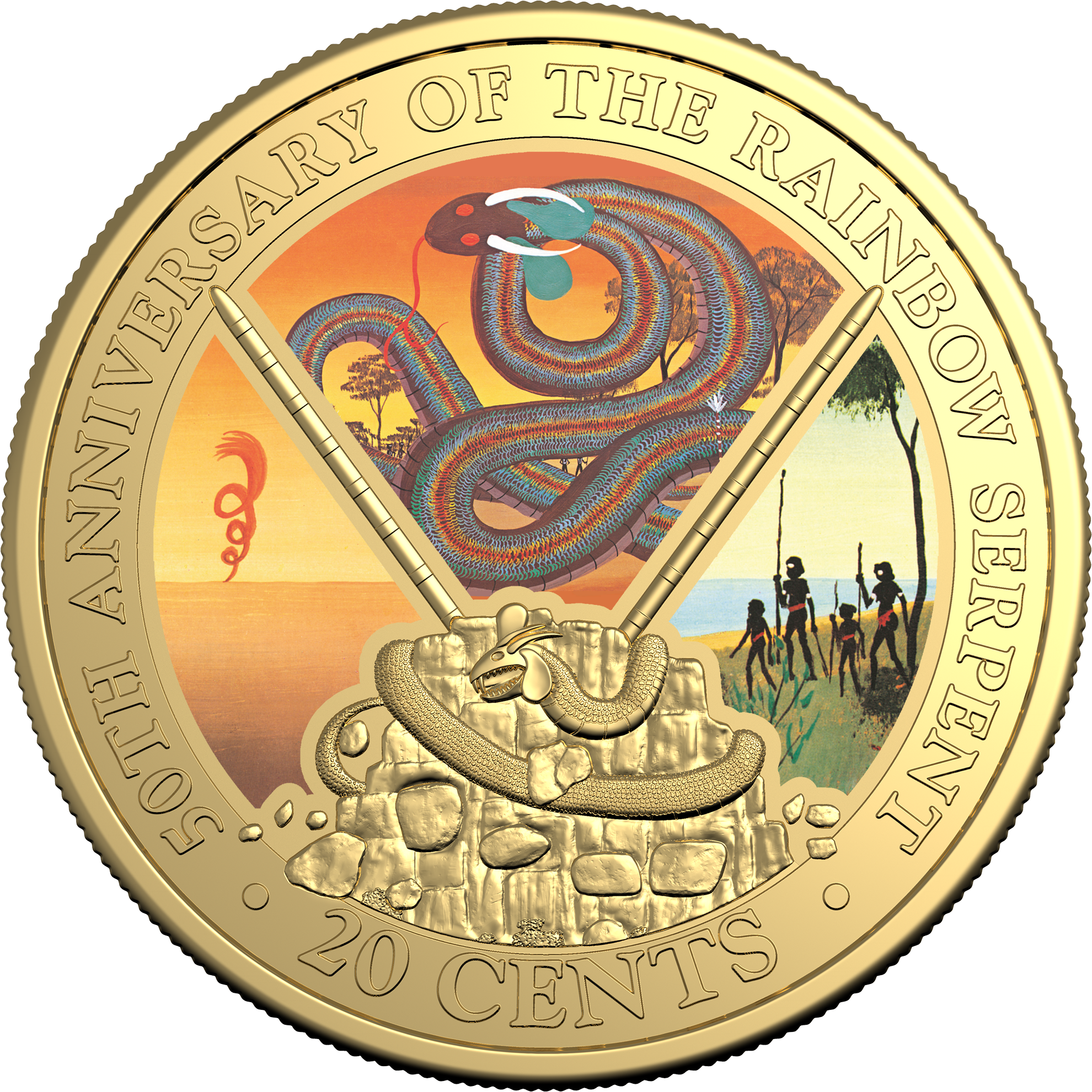 Celebrating its 50th anniversary in 2025 is much-loved children’s book The Rainbow Serpent, written and illustrated by Lardil man, Dick Roughsey. The final release in the Australian Children’s Literature program by the Royal Australian Mint and Children’s Book Council of Australia, The Rainbow Serpent is an Aboriginal Dreamtime story with stunning illustrations. Young and old alike will delight in these coloured coins that connect people with the joy of reading.