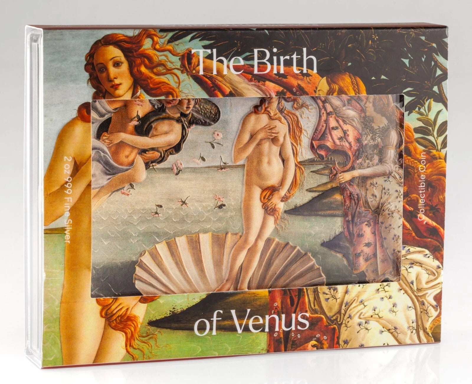 The Birth of Venus 2 oz Silver High Relief Coloured Coin 2023 Chad Copper Core