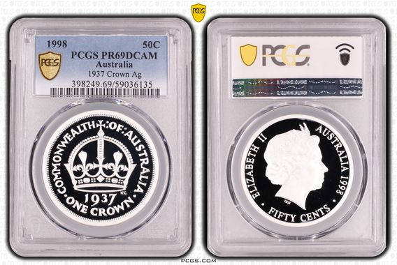 Royal Australian Mint 1998 PCGS PR69DCAM 50c Australia 1937 Crown Ag