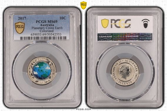 Royal Australian Mint 2017 Australia Planetary Coins 10c Earth Colorized PCGS MS69