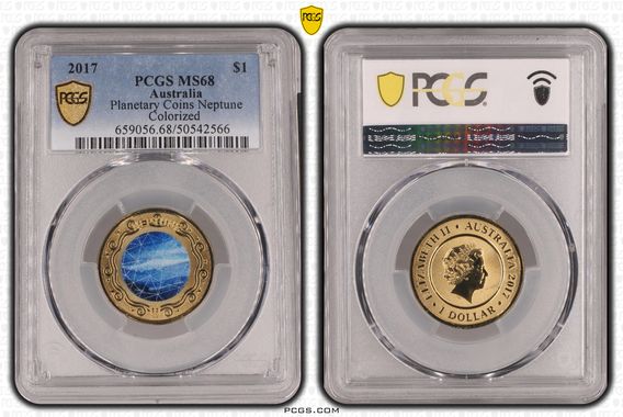 Royal Australian Mint 2017 Australia Planetary Coins $1 Neptune Colorized PCGS MS69