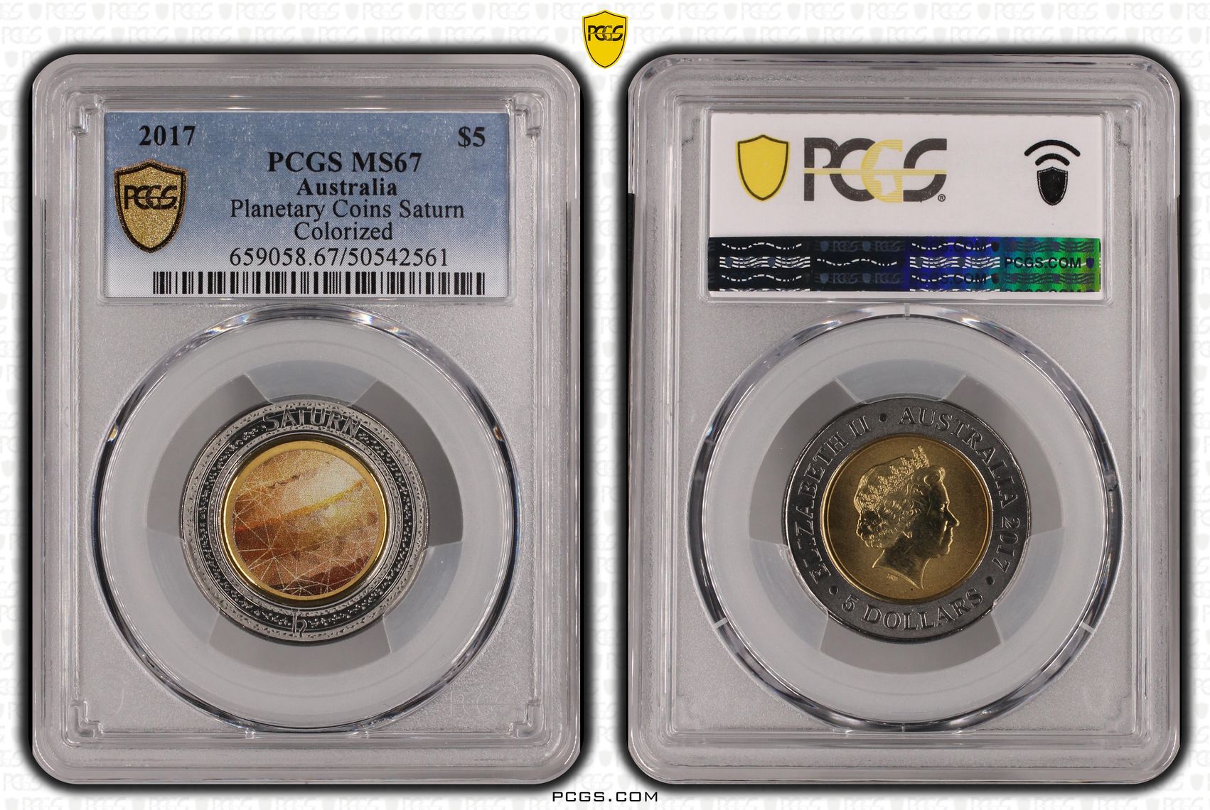 Royal Australian Mint 2017 Australia Planetary Coins $5 Saturn Colorized PCGS MS67