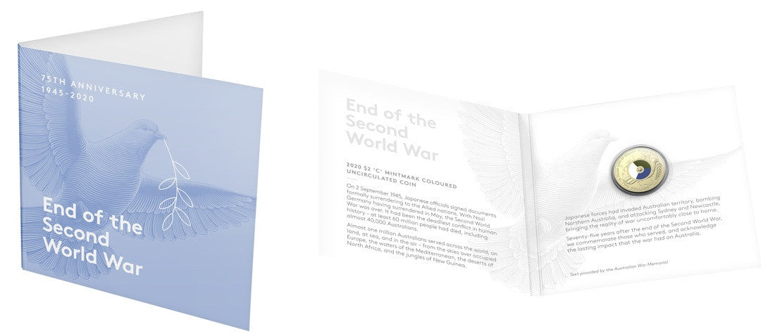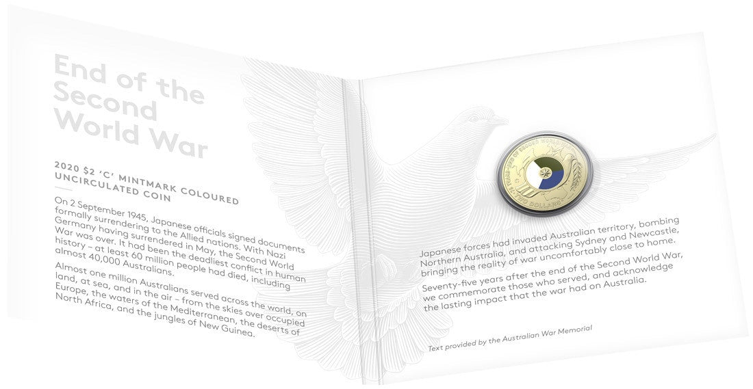 Royal Australian Mint 2020 $2 AlBr C Mintmark Uncirculated Coin - 75th Anniversary of the End of WWII
