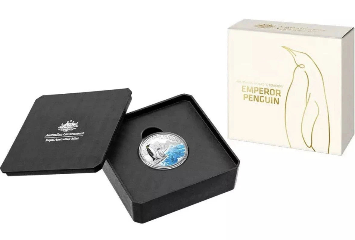 Royal Australian Mint 2023 $5 1oz Silver Proof Coloured Coin – Australian Antarctic Territory – Emperor Penguin