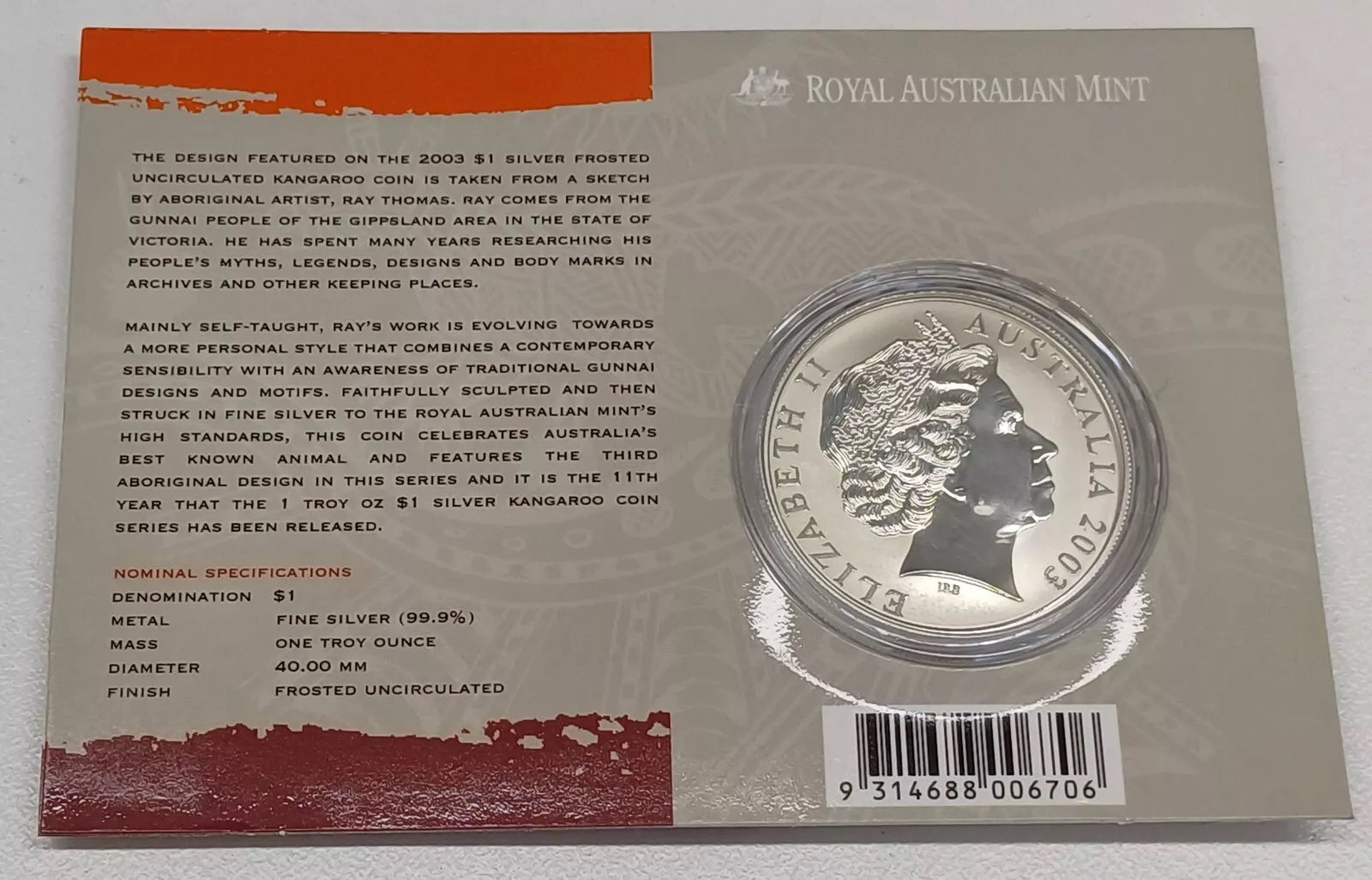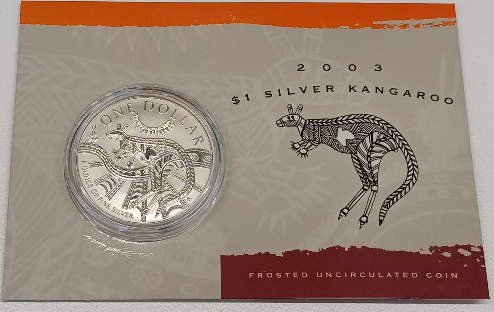 2003 Australia 1 oz Silver Kangaroo Frosted UNC (In Display Card)