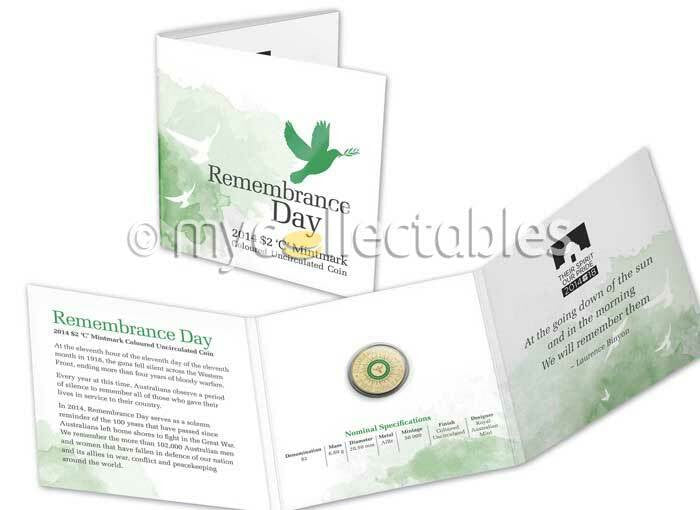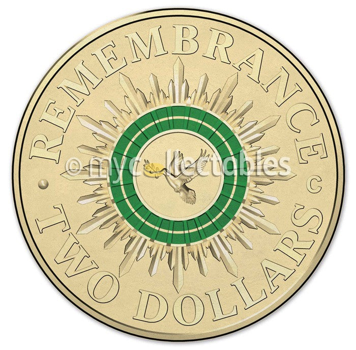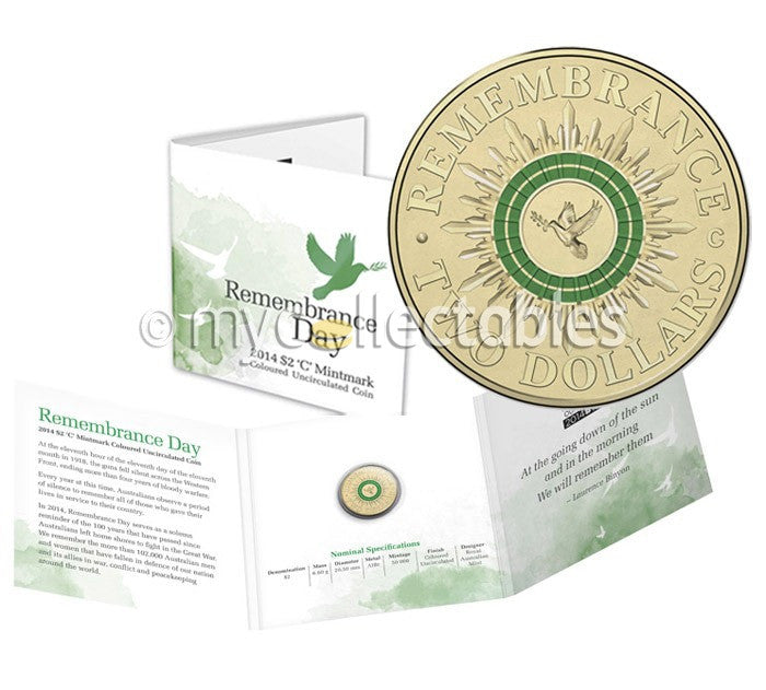 2014 $2 C Mintmark Remembrance Day Coloured UNC coin