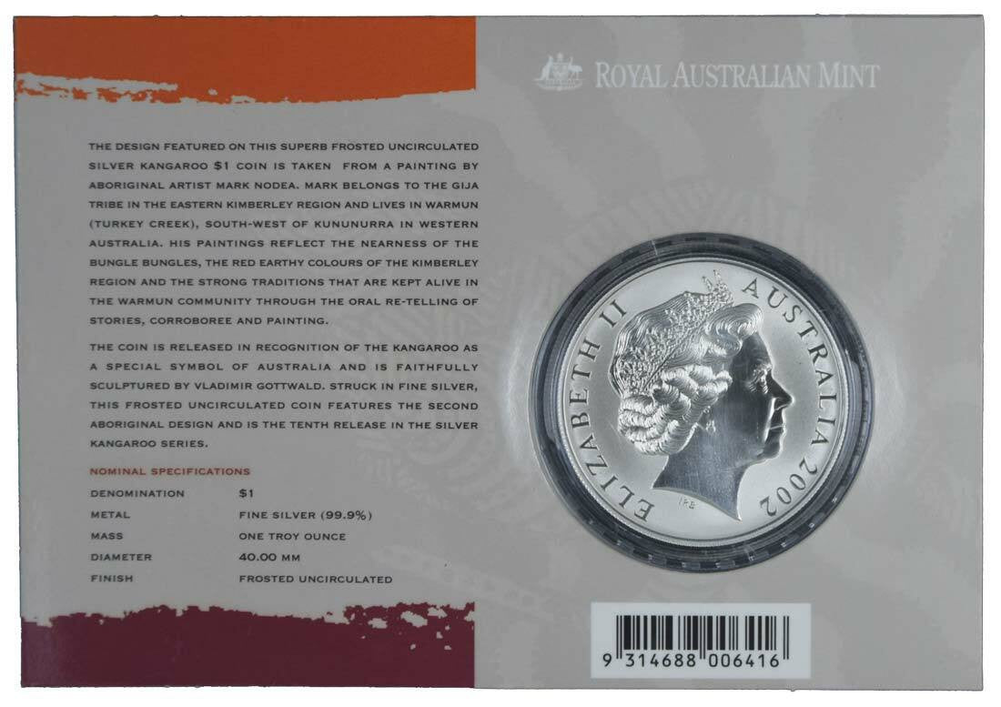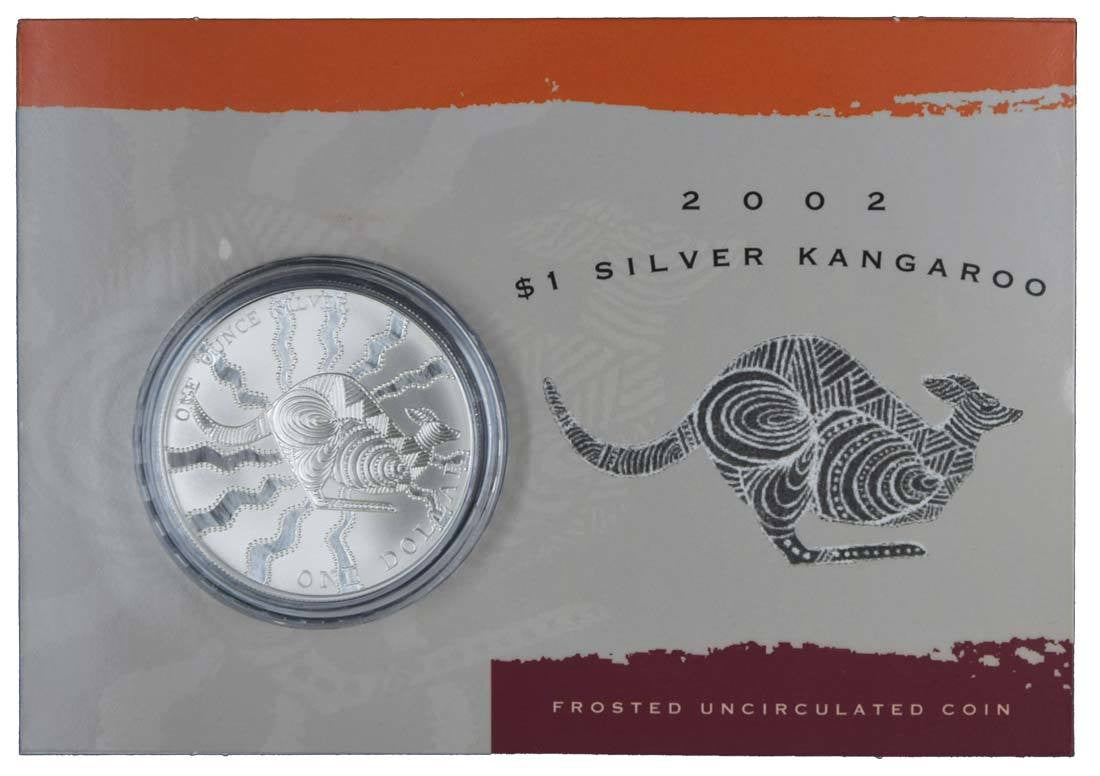 2002 Australia 1 oz Silver Kangaroo Frosted UNC (In Display Card)