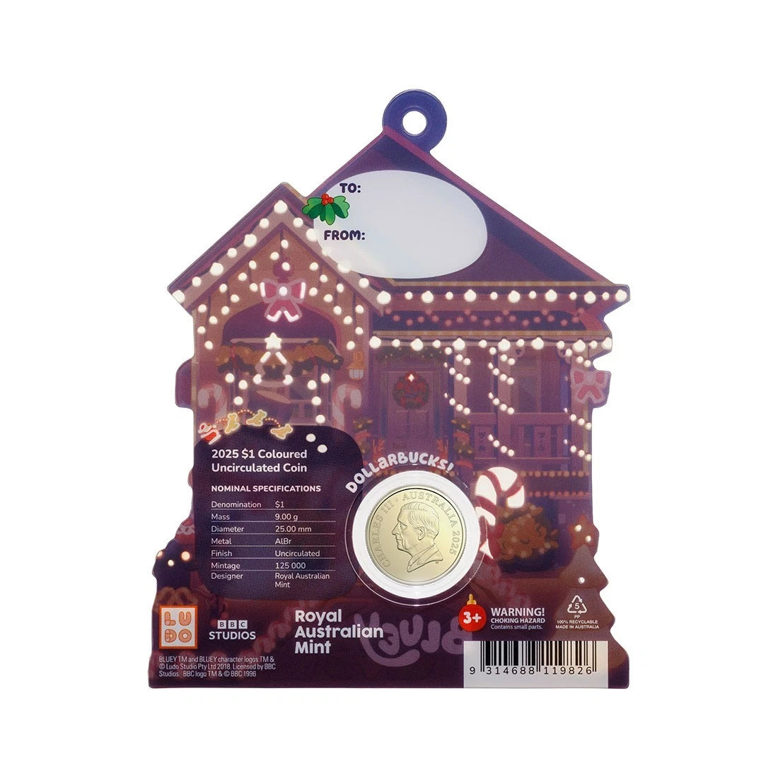 Royal Australian Mint 2025 $1 Coloured UNC Christmas Bluey Dollarbucks