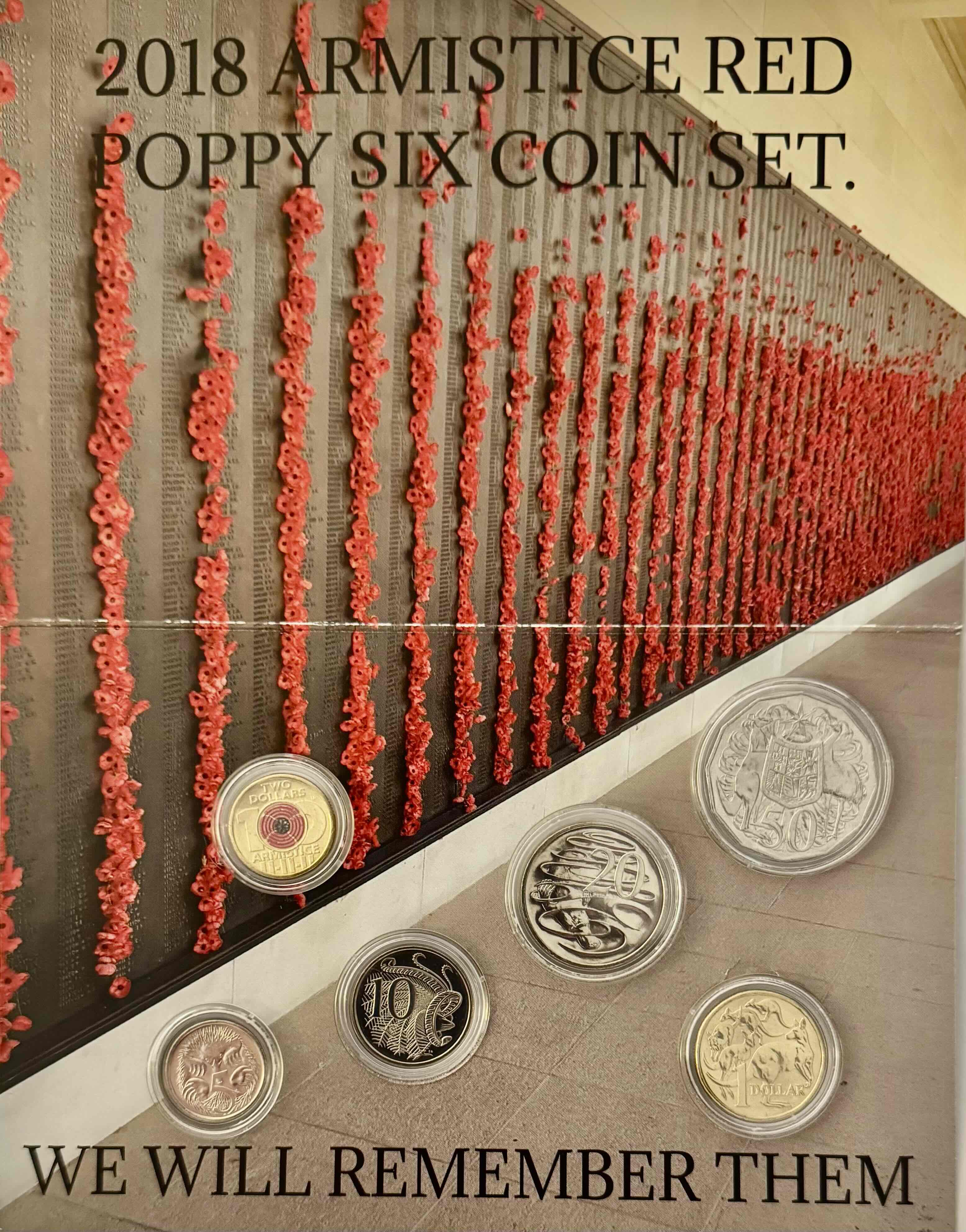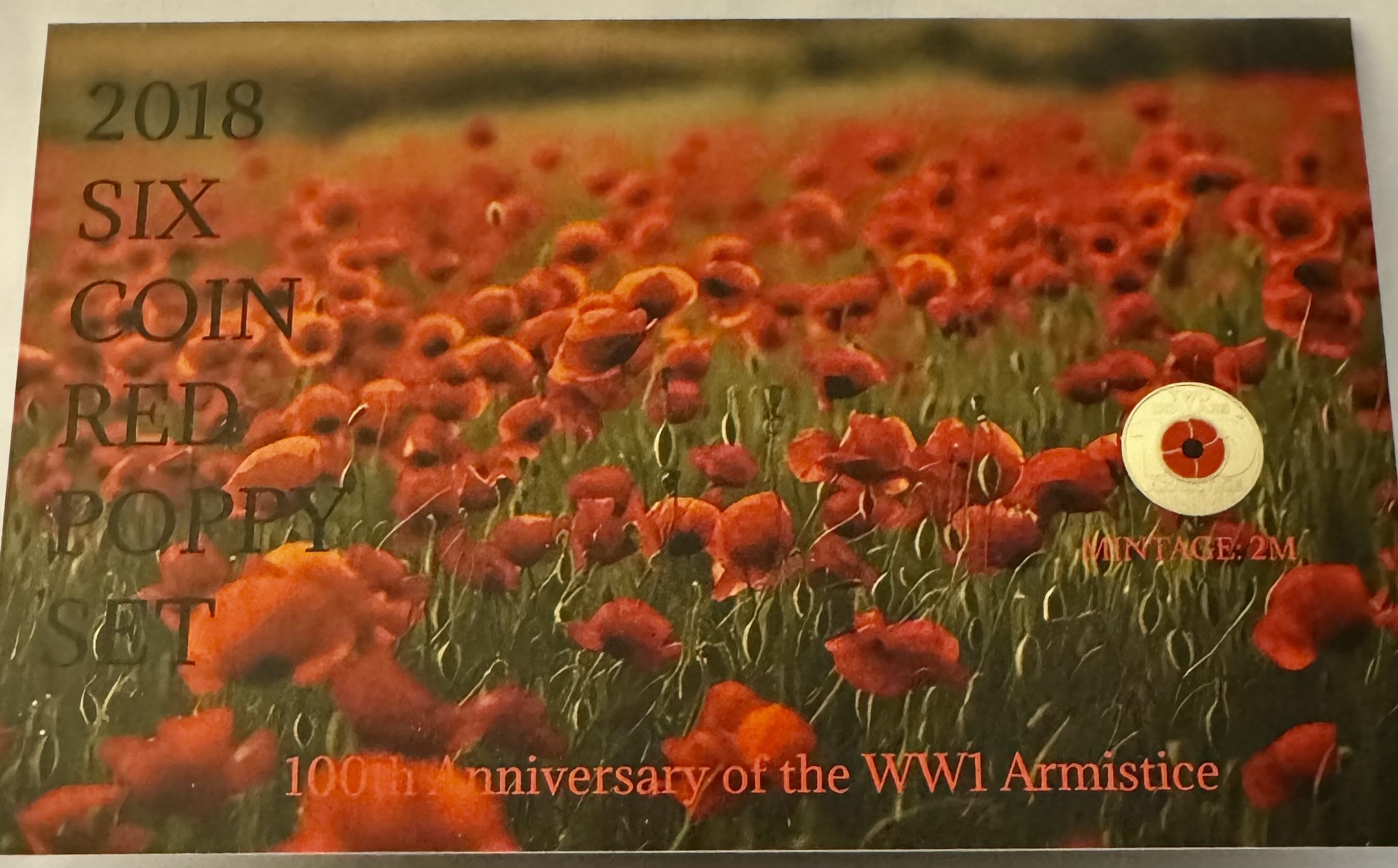 2018 $2 Red Poppy Coloured $2 Six Coin UNC Set
