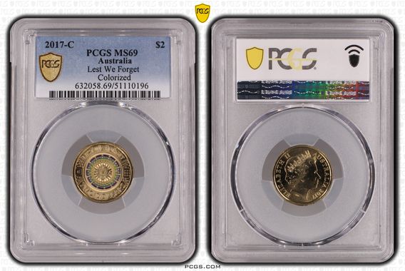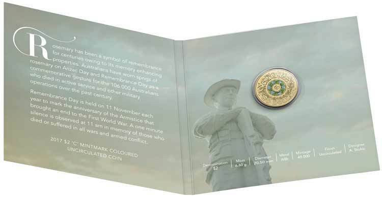2017 $2 AlBr C Mintmark Colour Uncirculated Coin - Remembrance Day