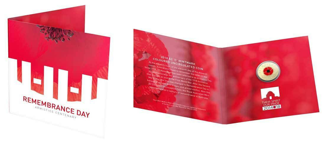 2018 $2 'C' Mintmark Coloured Uncirculated Coin - Remembrance Day - Armistice Centenary