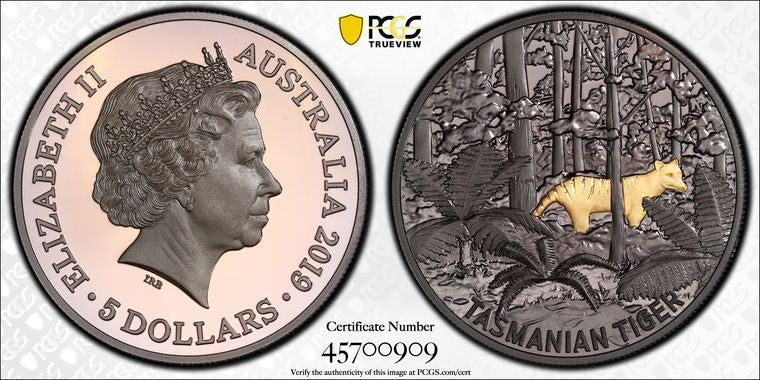 2019 $5 Ag Proof Coin - Echoes of Australian Fauna - Tasmanian Tiger PCGS PR70 DCAM