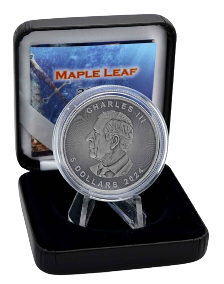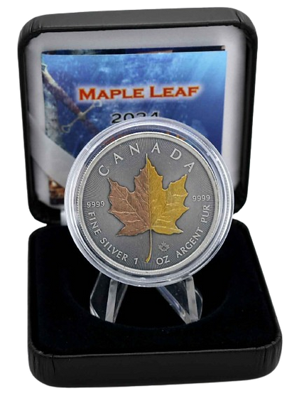 2024 $5 Maple Leaf 1 oz Antiqued Silver Gold Treasure Edition Coin