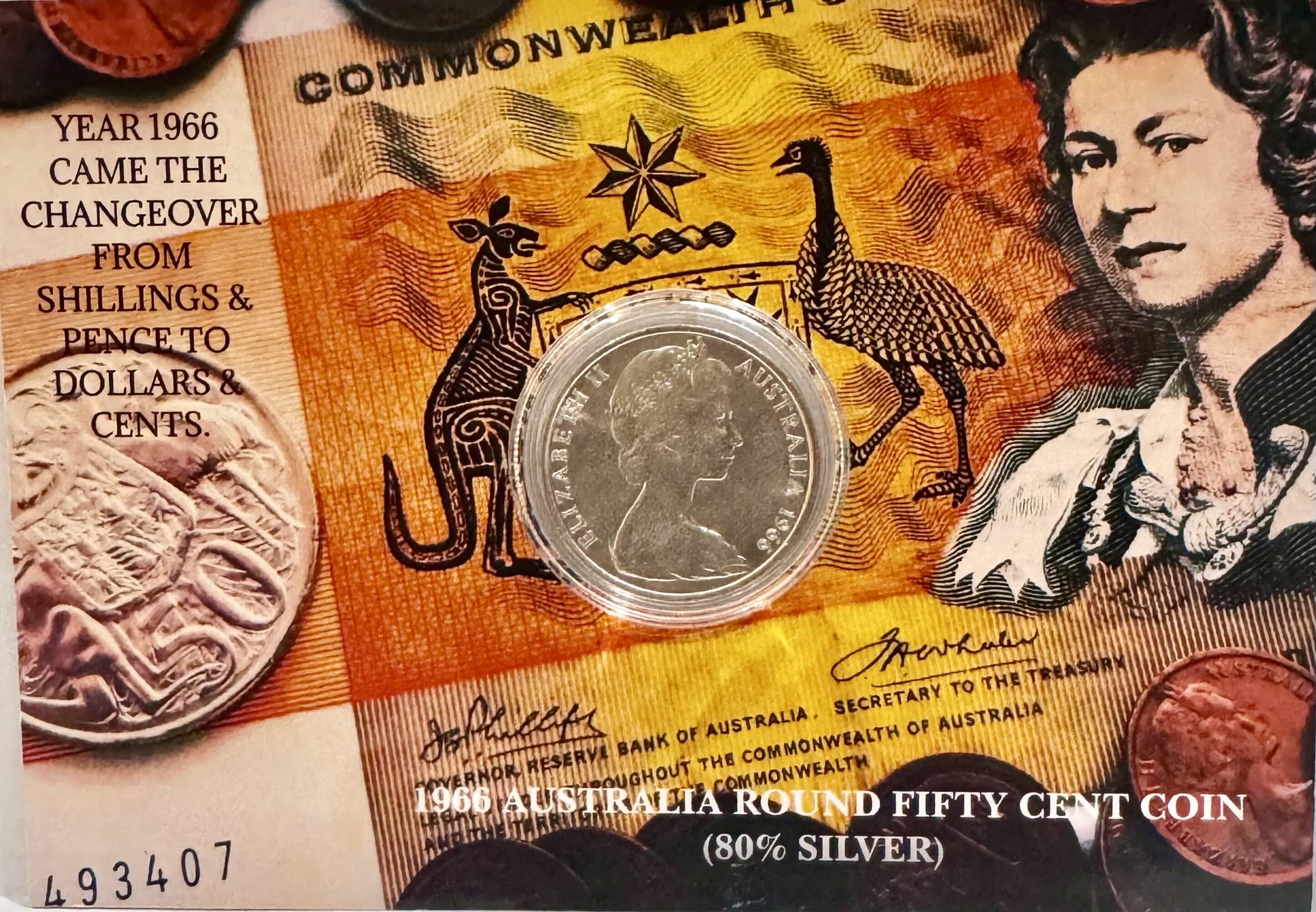1966 Round 50c Coin GEM UNC 80% Silver Coin in Card