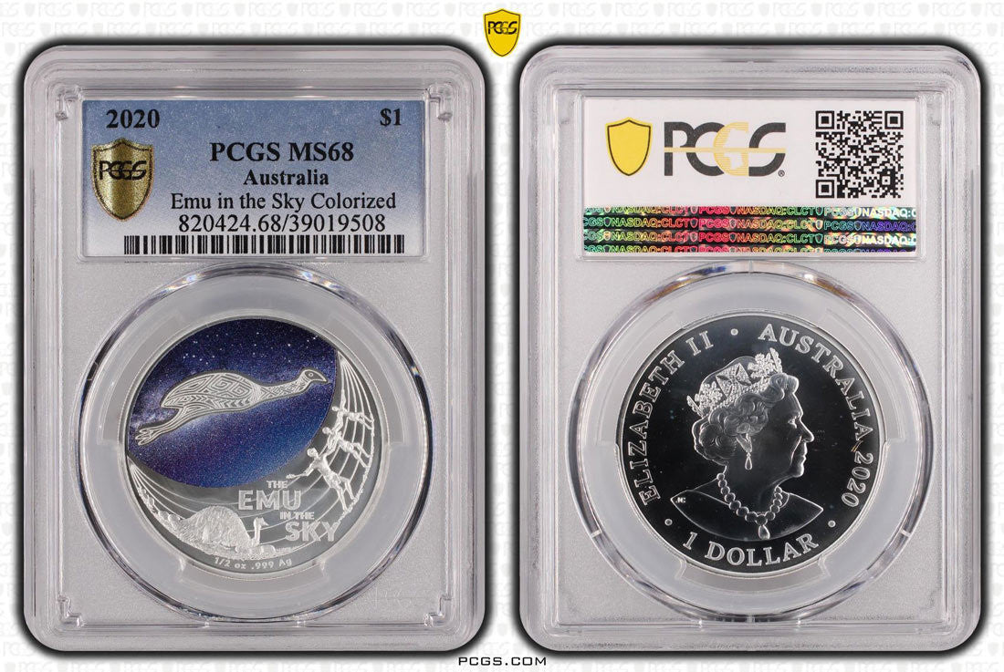 2020 Emu in the Sky Coloured $1 Coin PCGS MS68