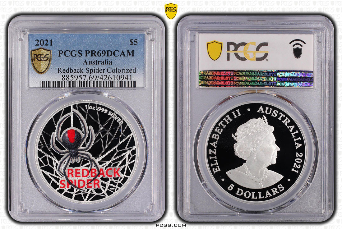 2021 $5 Redback Spider Colorized, PCGS PR69 DCAM