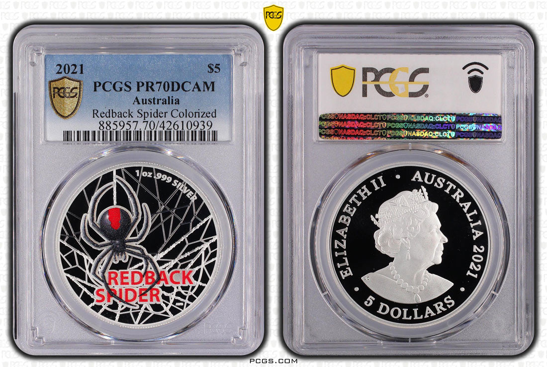 2021 $5 Redback Spider Colorized, PCGS PR70 DCAM Top Pop 3/0