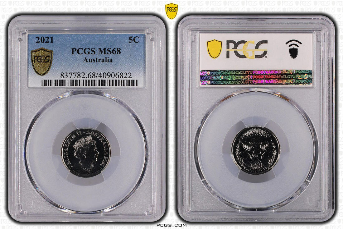 2021 Australian 5C Echidna PCGS MS68 Regular Strike.