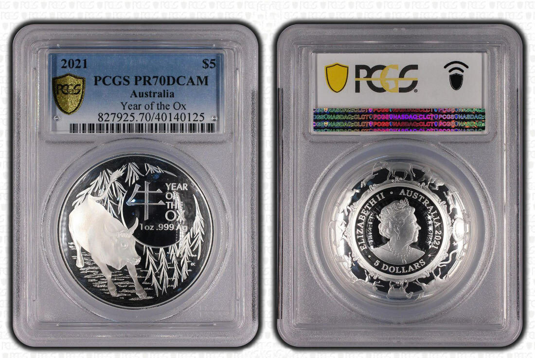 2021 Year of the Ox $5 1oz silver Domed Coin PCGS PR70 DCAM