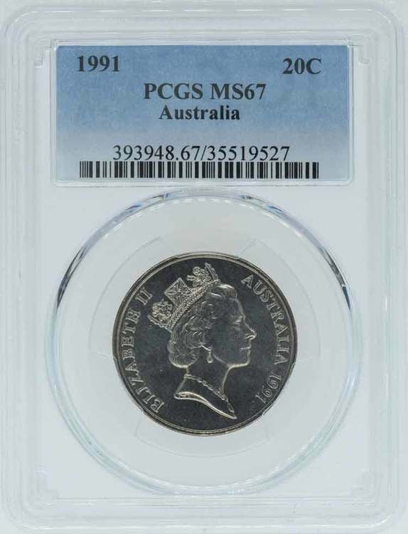 1991 Australian 20C PCGS Graded MS67