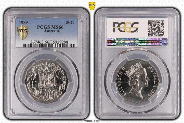 1989 Australian 50c PCGS Graded MS66