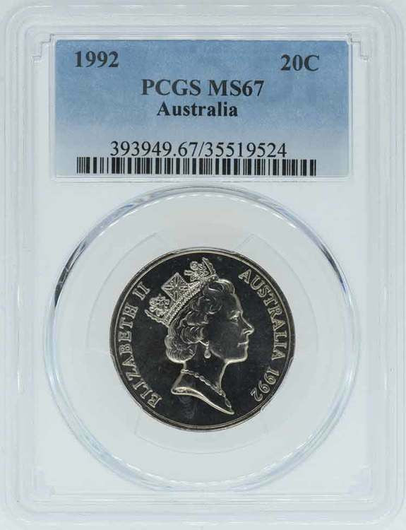 1992 Australian 20C PCGS Graded MS67